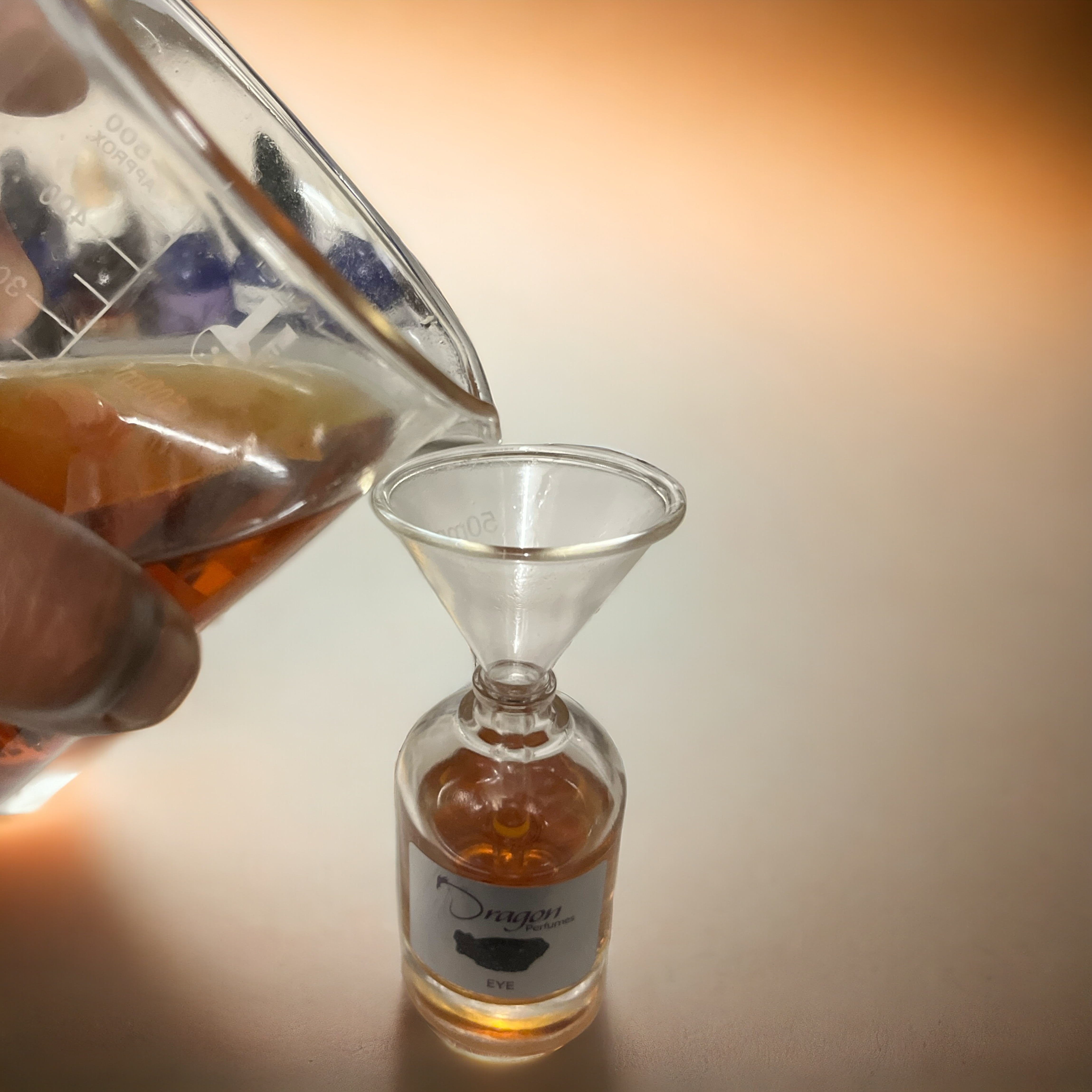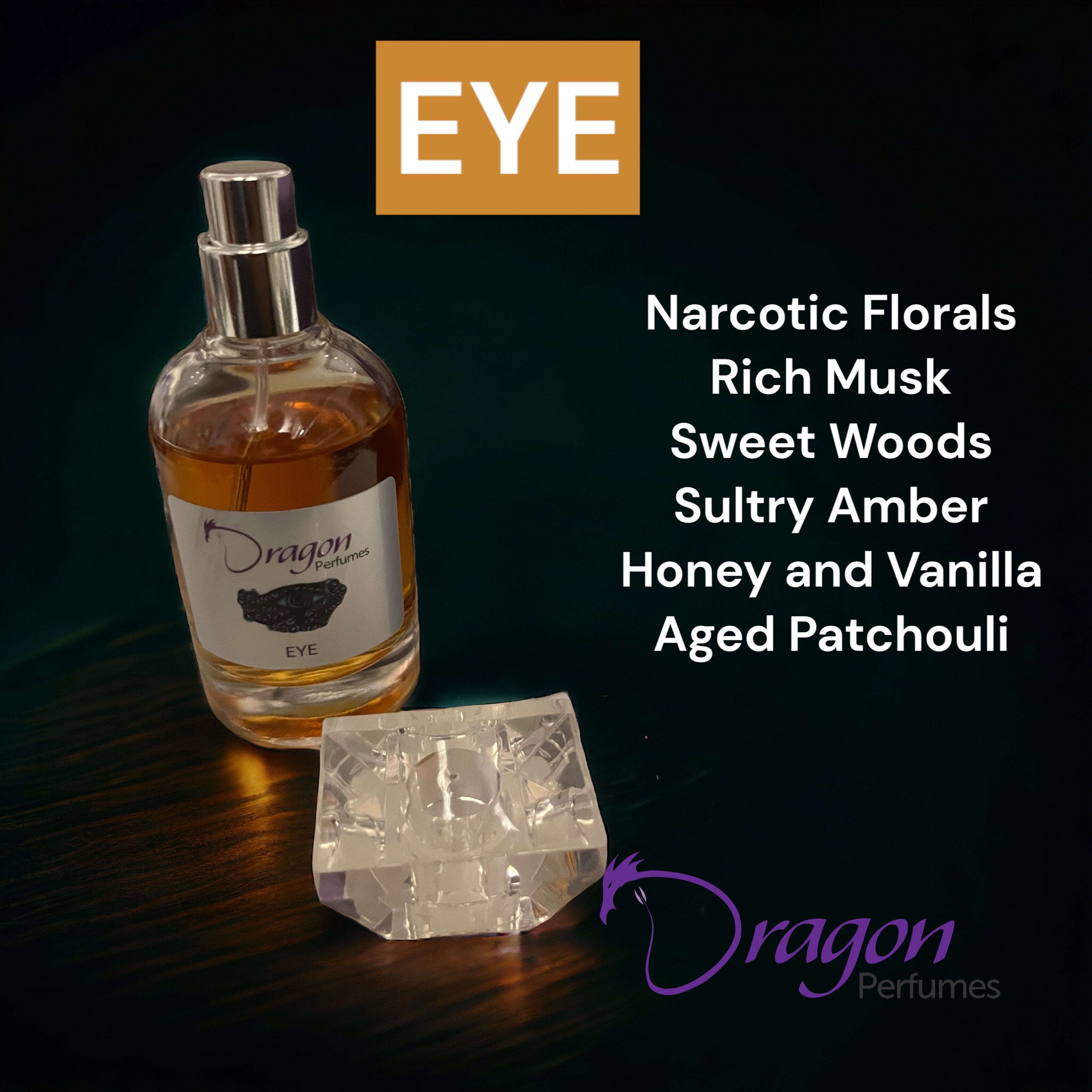 EYE opens crisp and intuitive, then becomes luminous as Dragon Radiance pulls everything into focus. As it dries down, incense and dark woods add gravity while the amber-mineral core keeps the scent polished and composed.