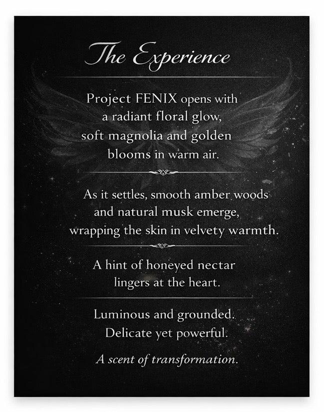 FENIX begins bright and polished, then becomes silkier and more textured as the Cashmere wood heart moves forward. Over time, the amber wood base adds warmth, softness, and depth, giving the fragrance a refined presence that feels modern, smooth, and effortless.