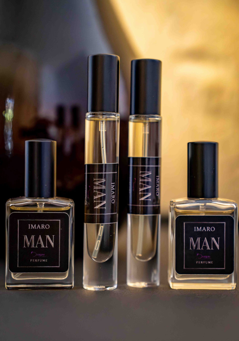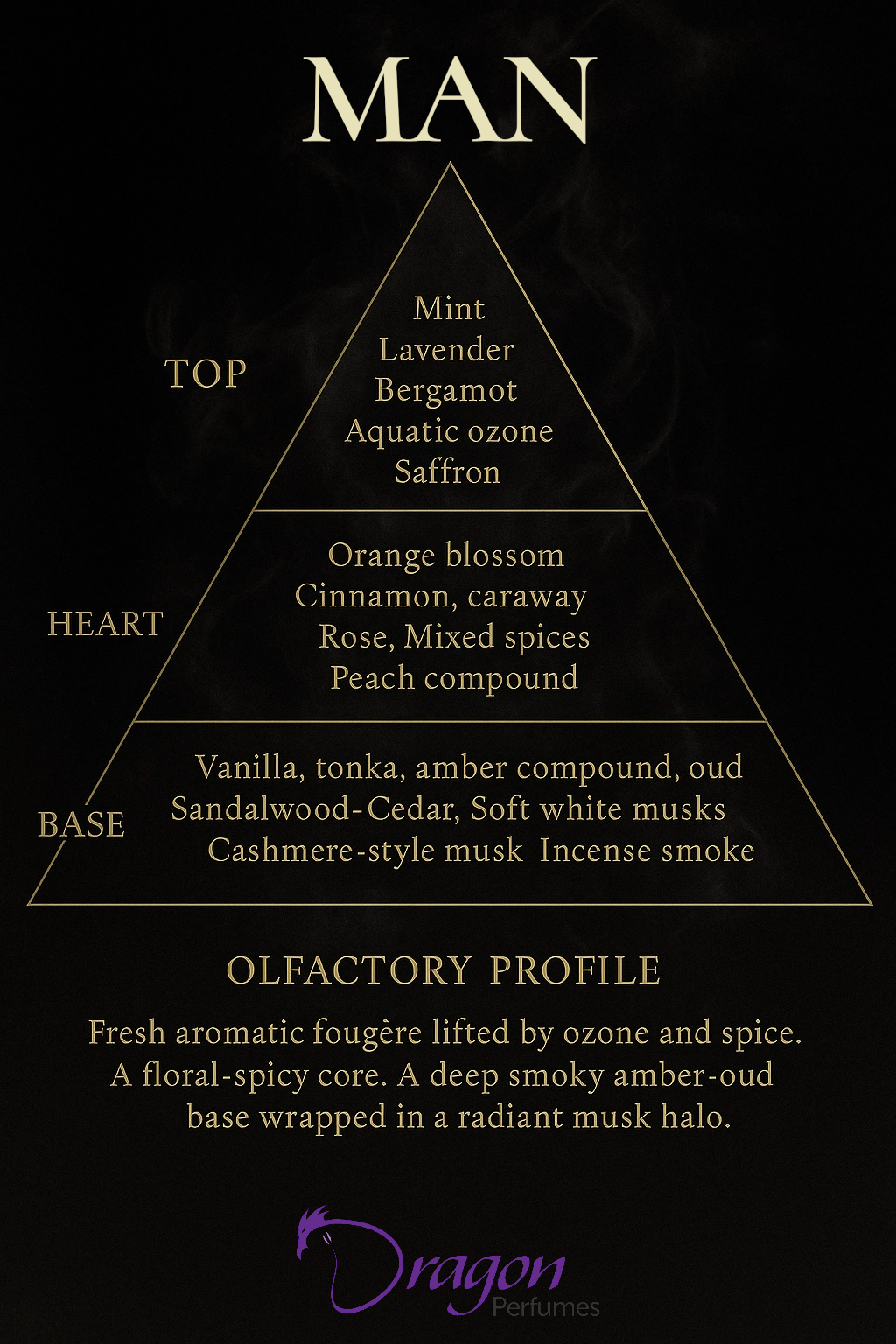 Air and flame, refined. Created in celebration of the MAN Issue, Holiday 2025, IMARO Man honors strength with purpose and refinement without performance. It opens sharp and luminous with mint, lavender, and bergamot, carried by aquatic ozone and a thread of saffron. The heart rises with orange blossom and rose, structured by cinnamon, caraway, and mixed spices. Then it settles into the signature: amber and oud, tonka and sandalwood cedar, soft white musks and cashmere-style musk, finished with a wisp of incense smoke.